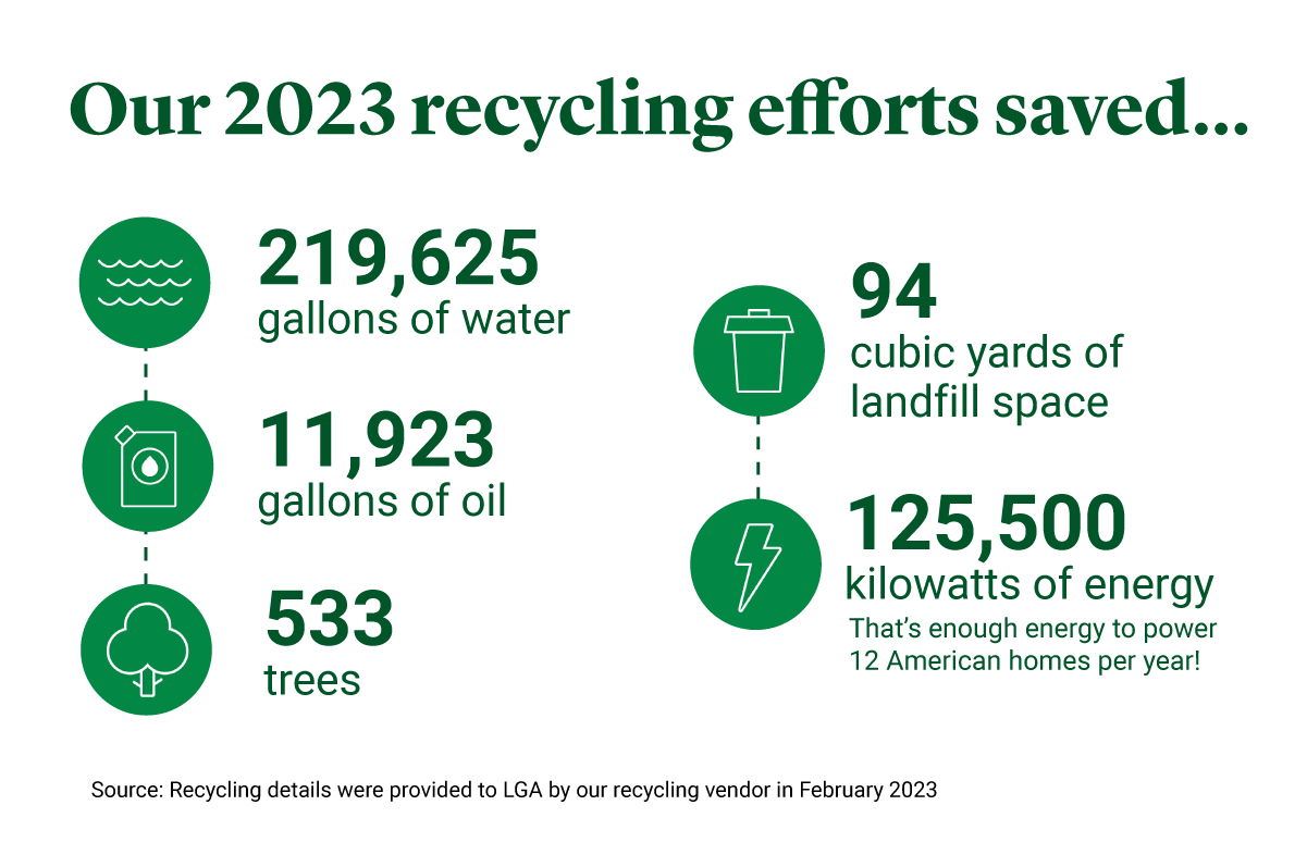 and the Indoor Environmental Quality Certification (2014-2023). We use 35% less energy than similar-sized companies and generate 35% fewer greenhouse emissions than similar buildings across the nation.