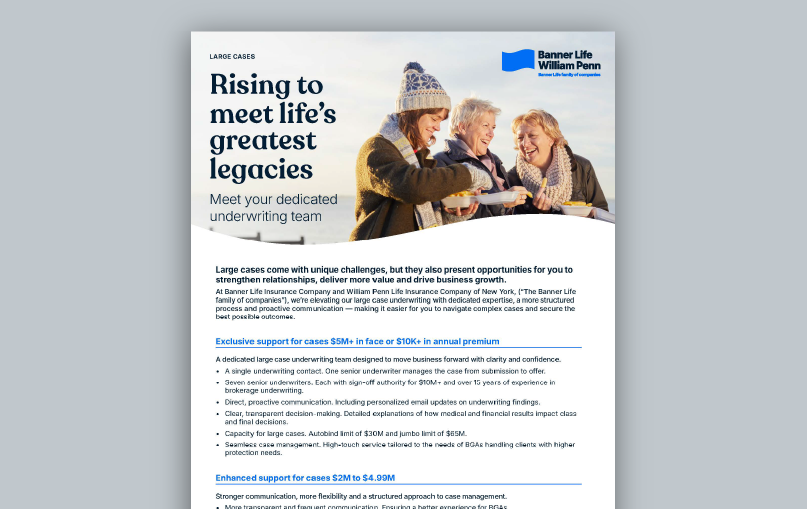 At William Penn Life Insurance Company of New York, we focus on making it easier and faster for you to do business, support your clients and grow your success. From longer term options to flexible coverage solutions and dedicated underwriting support, we help you place more cases with less hassle.