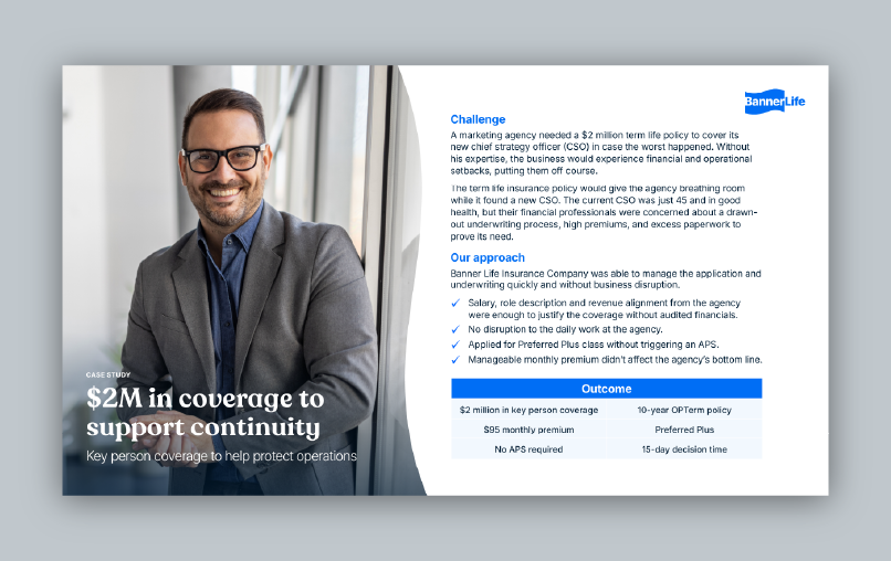 Helping advisors, BGAs and financial professionals simplify and secure coverage for key person insurance, SBA collateral assignment and other business protection strategies.